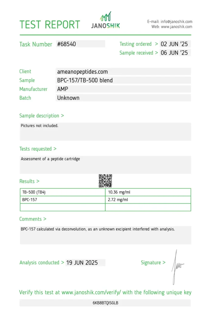 Every peptide is produced in a stringent quality-controlled laboratory and undergoes independent third-party testing to ensure ≥ 99 % purity and consistency in every batch.
