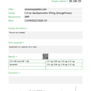 CJC-no DAC / Ipamorelin Blend 5mg/5mg is a high-purity research peptide combination supplied as a lyophilized powder. For in vitro research use only.