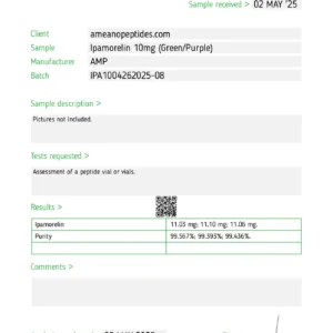 Ipamorelin 10mg is a high-purity growth hormone-releasing peptide (GHRP) intended for laboratory research. Supplied as a lyophilized powder and manufactured in a GMP-certified facility. For research use only.