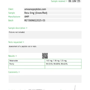 Retatrutide 6 mg is a ≥ 99 % pure triple-agonist peptide supplied as a lyophilized powder for in-vitro GLP-1 / GIP / glucagon receptor research. For laboratory use only—no human or veterinary applications.