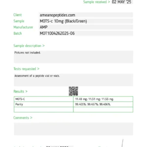 MOTS-C 10mg is a synthetic peptide for research use only. Supplied in lyophilized form with ≥99% purity.
