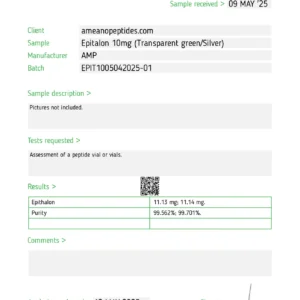 Epitalon is a synthetic research peptide presented in lyophilized powder form. Intended for laboratory-based scientific study only.